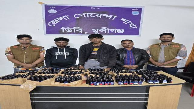 মুন্সীগঞ্জে ডিবি পুলিশের অভিযানে ৪০০ বোতল ফেন্সিডিল উদ্ধার, গ্রেফতার ৩
